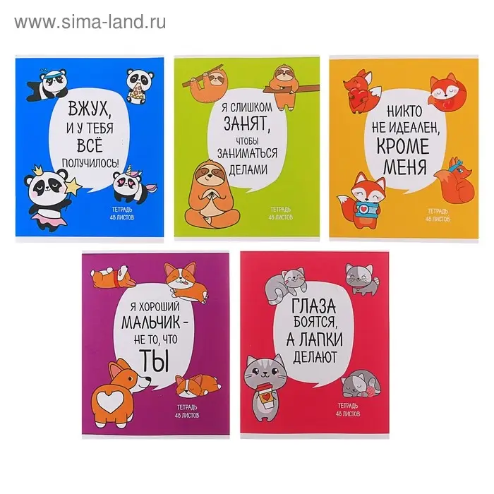 Комплект тетрадей из 5 штук, 48 листов в клетку Calligrata "Любимые питомцы", обложка мелованная бумага, блок №2, белизна 75% (серые листы)