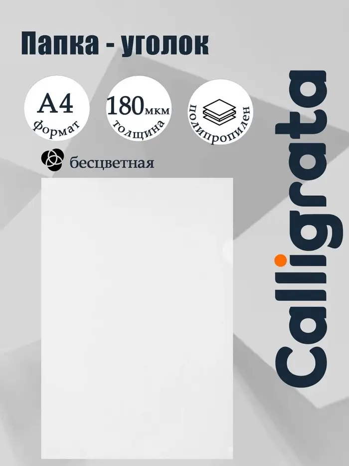 Папка-уголок А4, 180 мкм, Calligrata, прозрачная, бесцветная