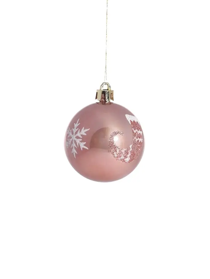 Ёлочные игрушки «Снежка», шары новогодние, d=6 см, набор 6 шт., розовый