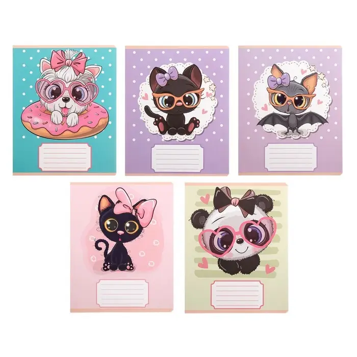 Тетрадь 12 листов в крупную клетку Calligrata "Милашки с бантиком", обложка мелованная бумага, ВД-лак, блок офсет, белизна 95%, МИКС