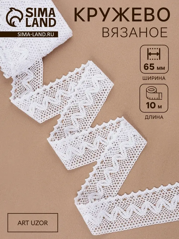 Кружево вязаное, 65 мм × 10±1 м, белое