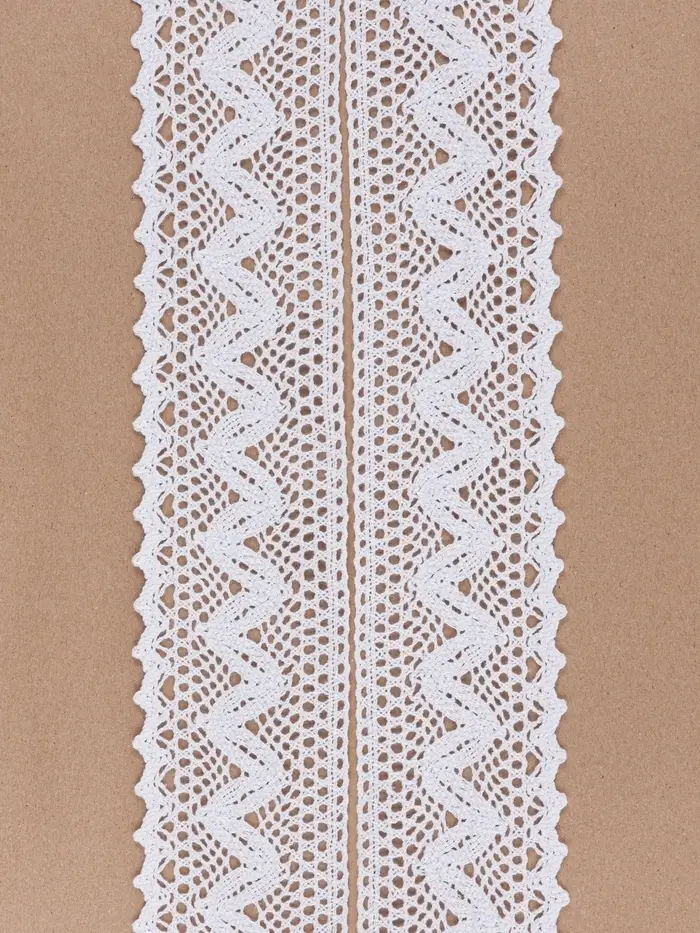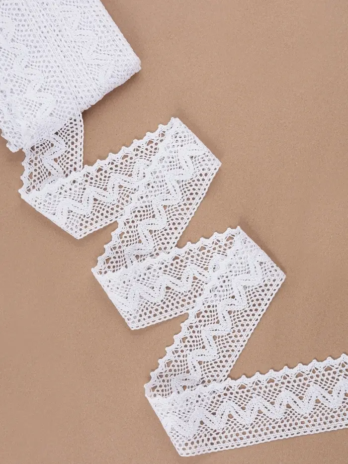 Вязаное белое кружево станет прекрасным дополнением для любого проекта, где требуется изысканность и стиль. Оно одинаково хорошо подходит для декорирования одежды, интерьера и подарков. Это кружево объединяет в себе прочность полиэстера и мягкость хлопка, создавая деликатную текстуру, которая придаст вашим изделиям уют и элегантность.