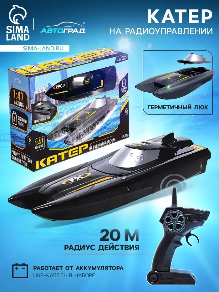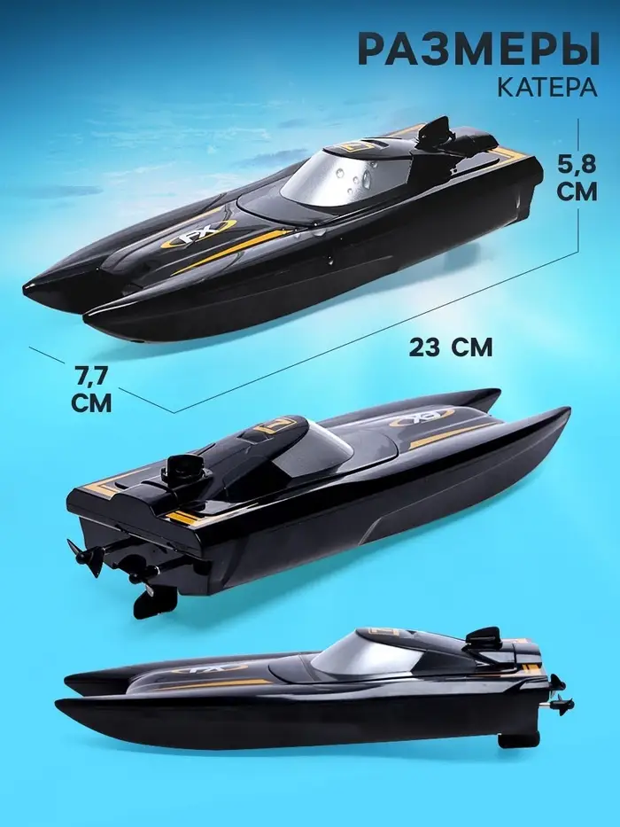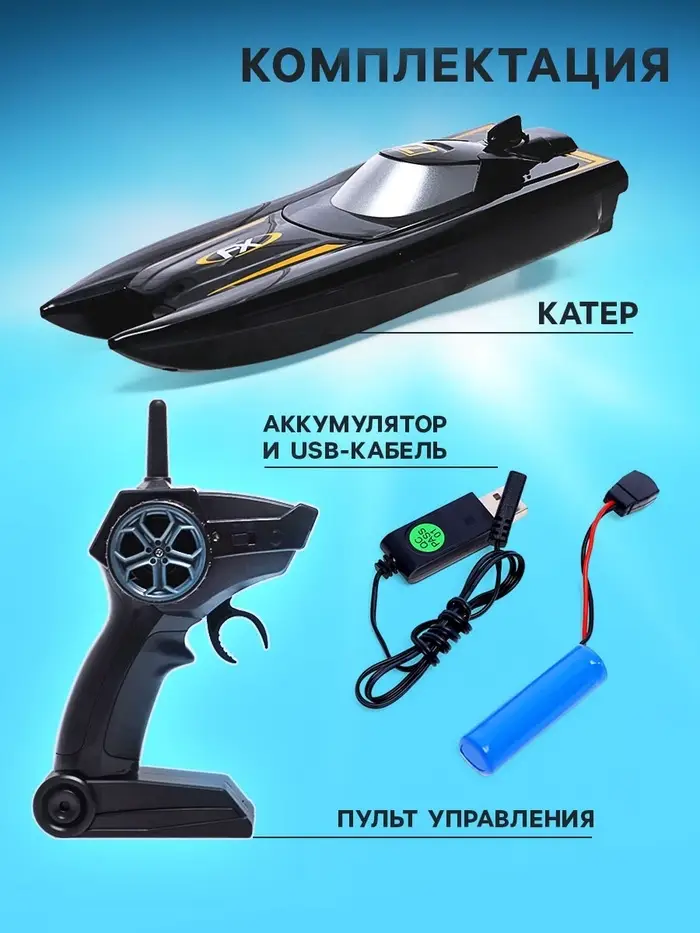 - Катер работает от аккумулятора ёмкостью в 650 mAh.