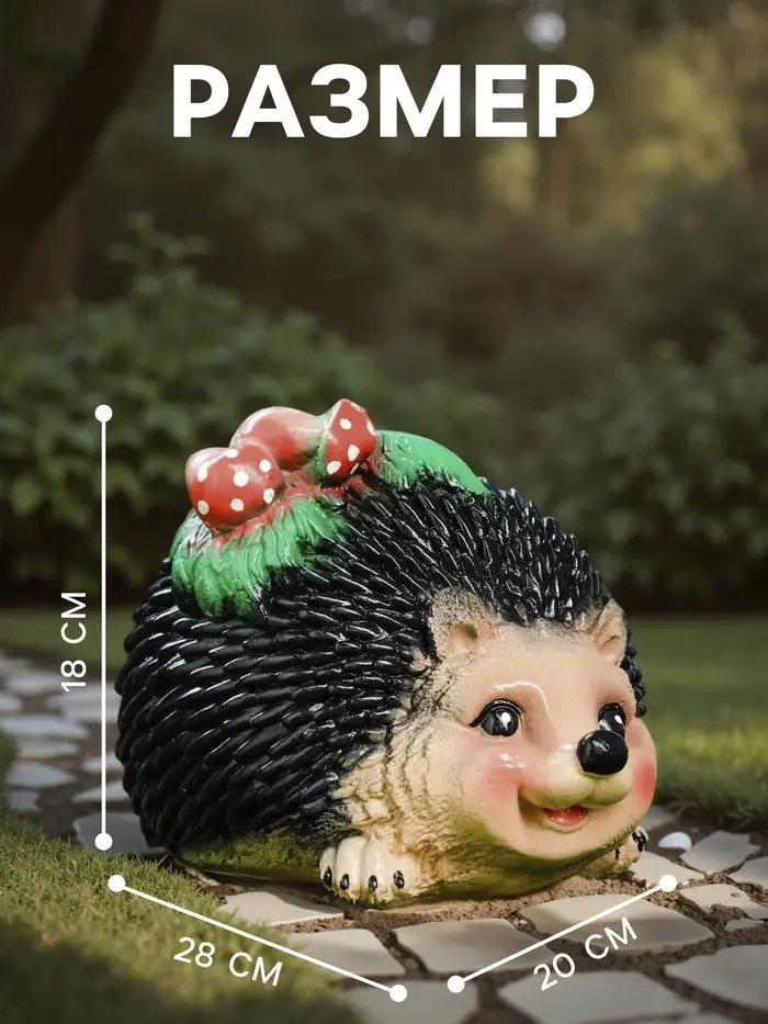 Садовая фигура из гипса «Ёжик с грибочками», 18×28×20 см