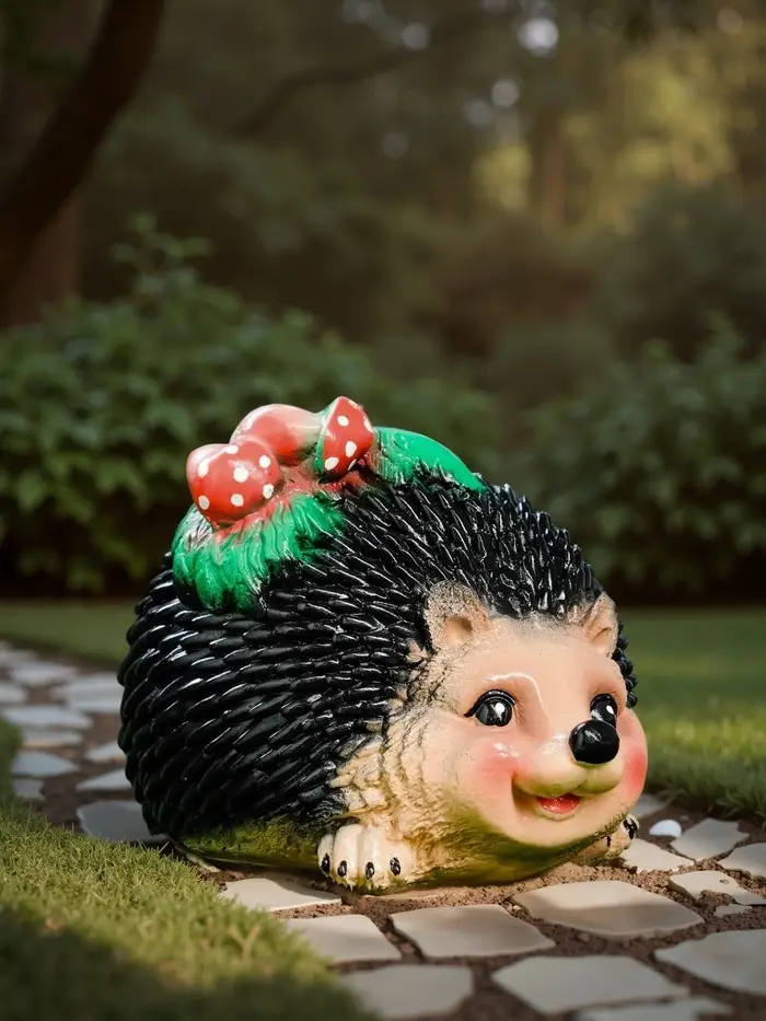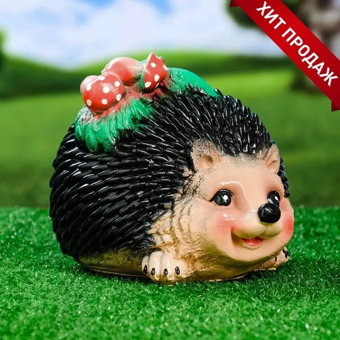 Садовая фигура из полистоуна «Ежик с мухомором», 11×9×8.5 см