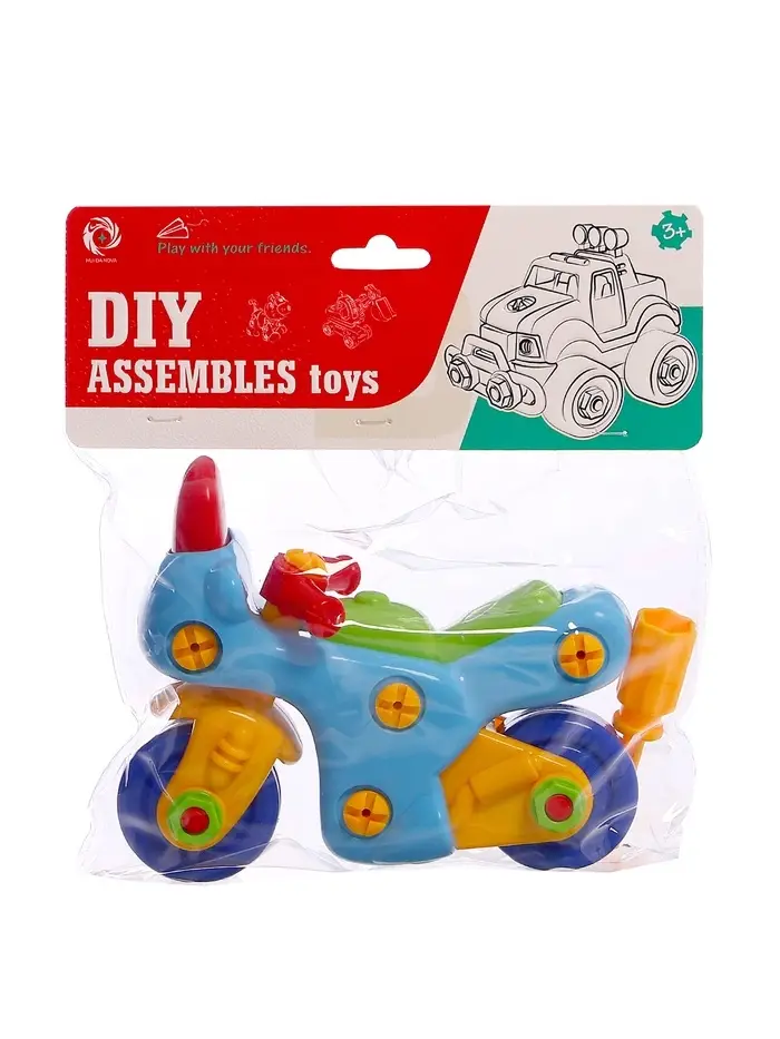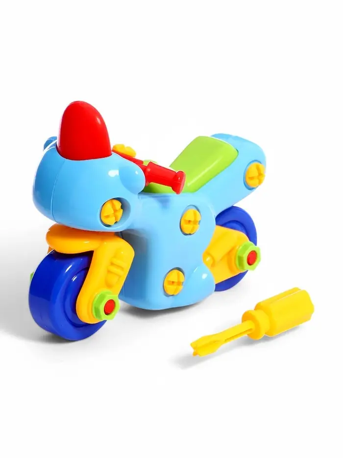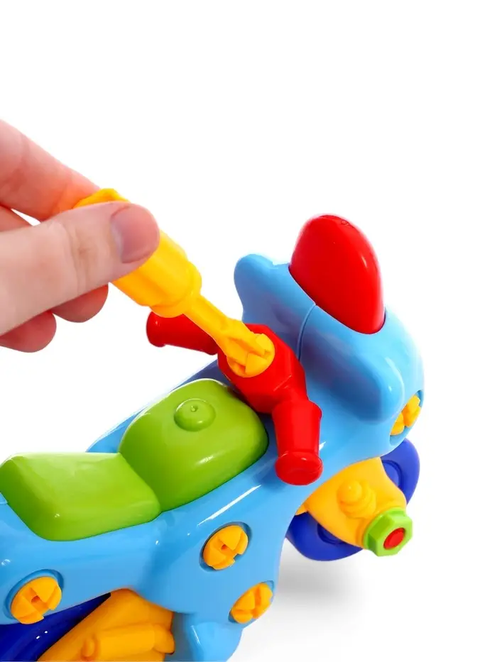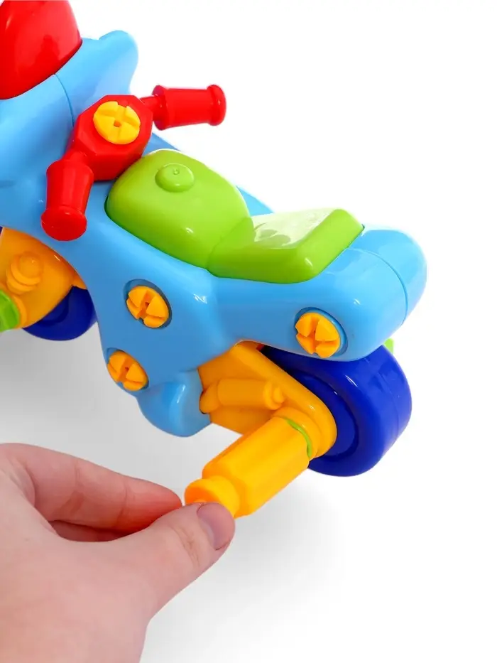 Ребёнок с помощью отверток, имеющихся в наборе, сможет сам собрать игрушку.