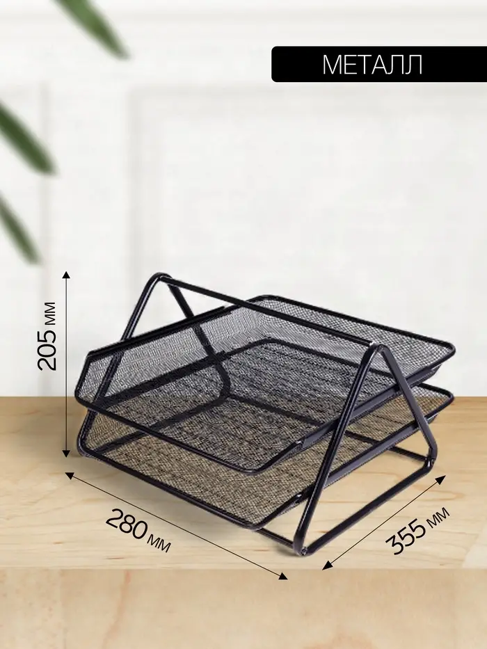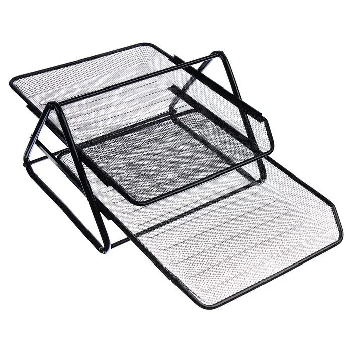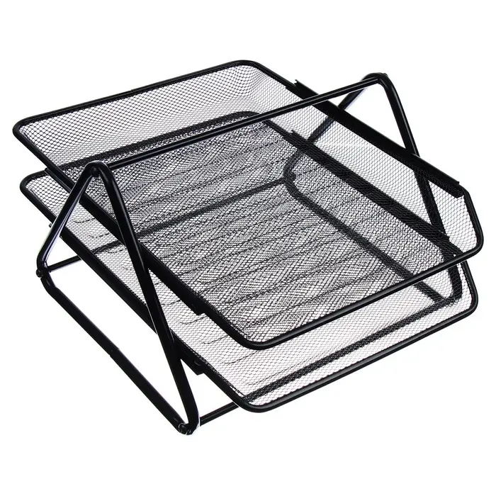 Лоток для бумаг горизонтальный, металлическая сетка, 2 отделения, чёрный