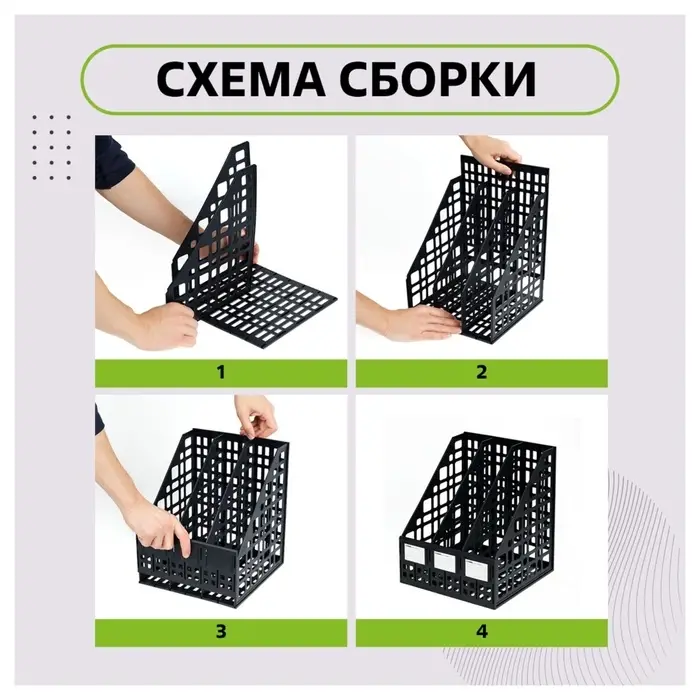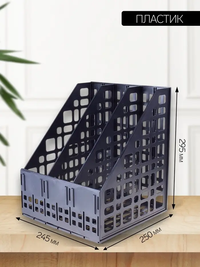 Лоток для бумаг LINE, А4, сборный, вертикальный, 3 отделения, чёрный