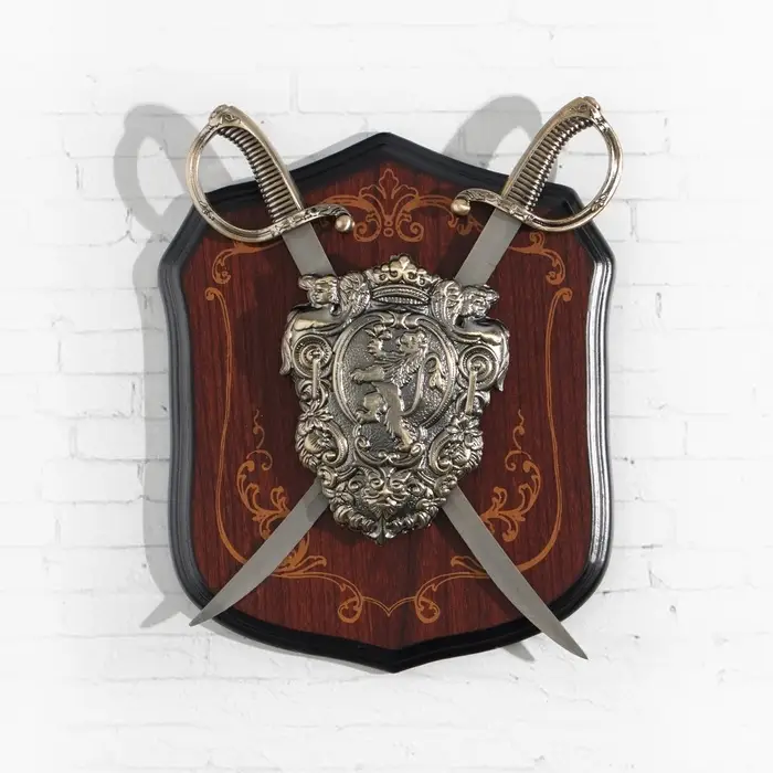 Погрузитесь в мир благородства и силы с настенным декором, который станет настоящим акцентом вашего интерьера. Этот декоративный щит с изображением льва и двух сабель не только украсит стену, но и наполнит пространство духом геральдики, символизируя мужество и защиту.