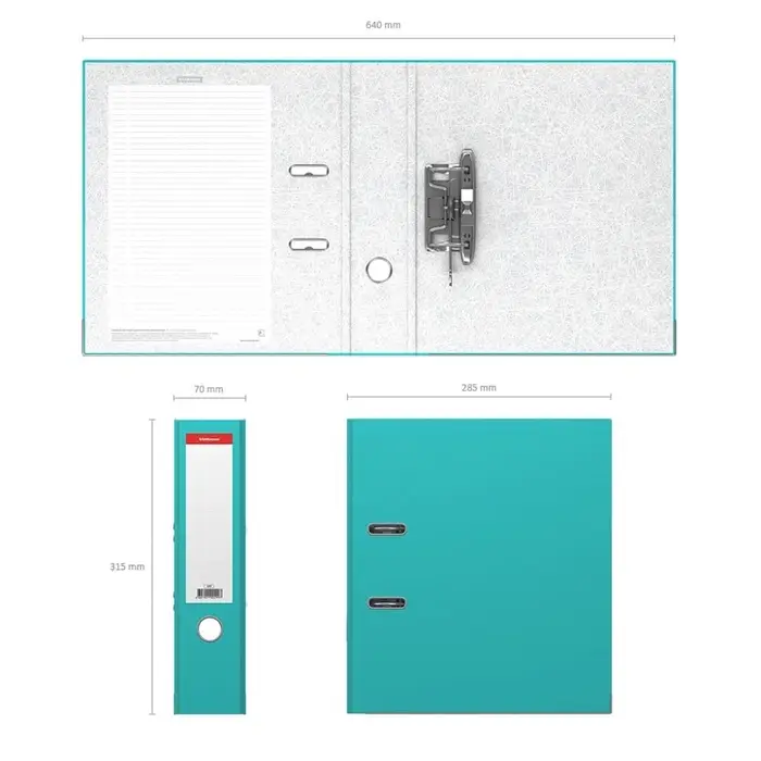 Папка-регистратор А4, 70 мм, ErichKrause, Standard, бумвинил, с этикеткой на корешке, нижний металлический кант, бирюзовая