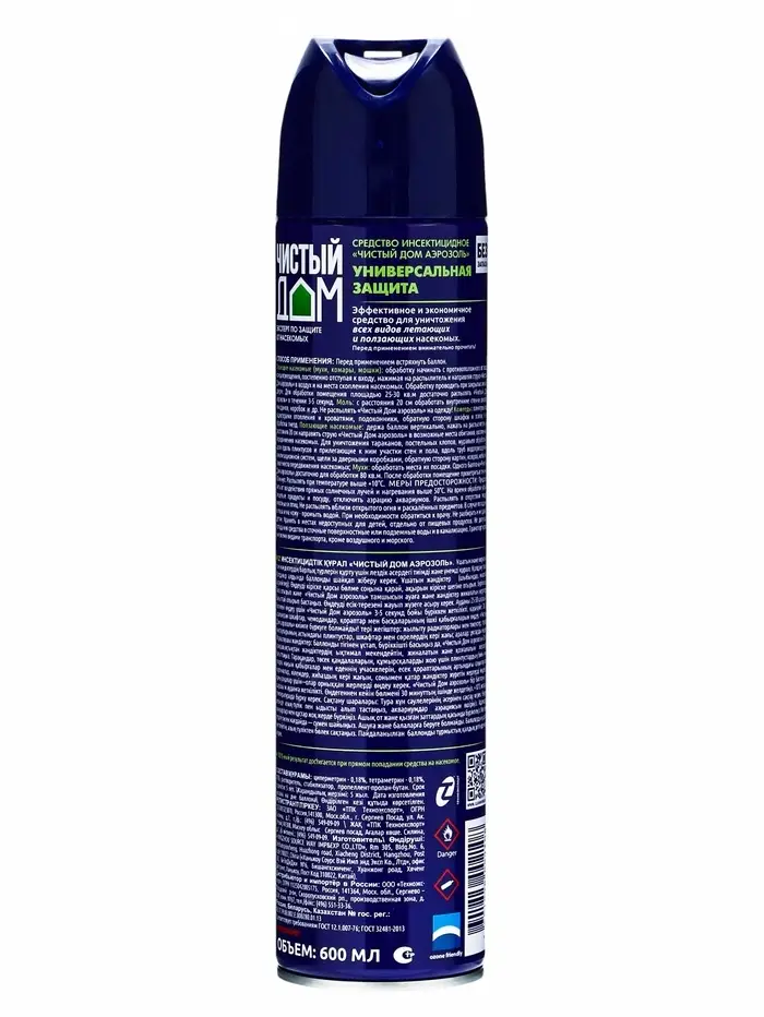 Аэрозоль от насекомых "Чистый дом супер" - эффективное решение проблемы насекомых в доме. Этот универсальный спрей оснащен двойным распылением и имеет объем 600 мл. Он быстро и надежно уничтожает муравьев, тараканов, мошек, комаров и других насекомых.