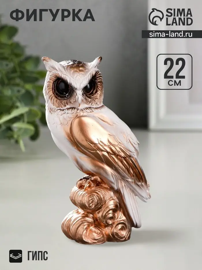 Фигурка гипс «Сова», белая, 11×22×9 см