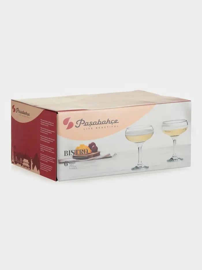 Бокалы для шампанского Bistro, 280 мл, набор 6 шт., стекло, прозрачные