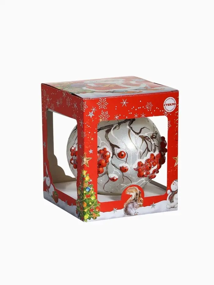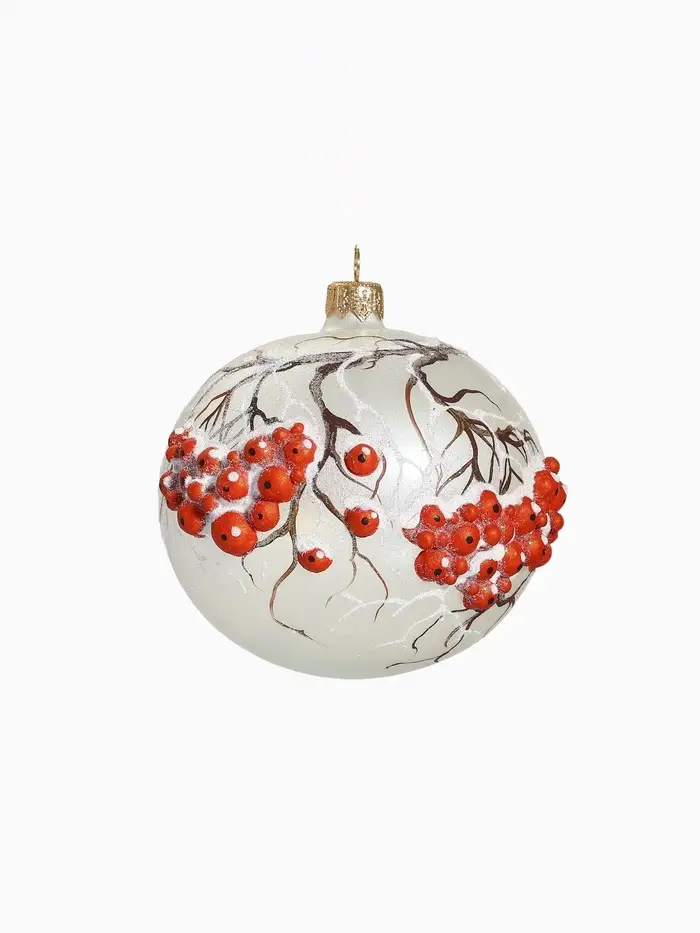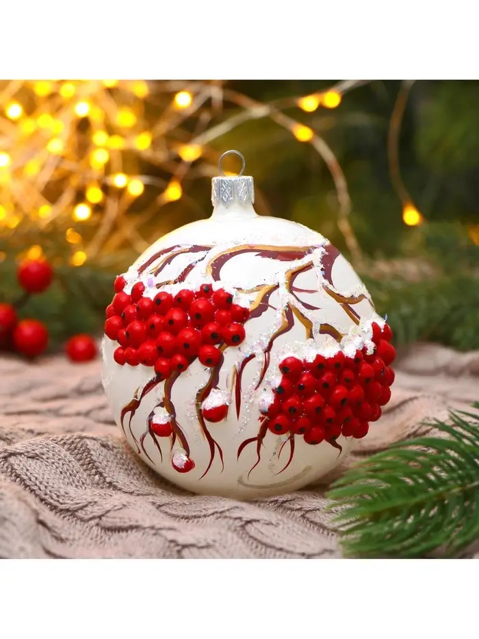 Этот шар наполняет интерьер теплом и уютом, напоминая о зимних ягодах и семейных традициях, которые связывают поколения. Он легко вписывается в разные стилистические решения, помогая сформировать атмосферу праздника и спокойствия, где каждый элемент декора способствует ощущению гармонии и радости. Размещение такого шара на ёлке может стать частью ритуала, усиливающего эмоциональную связь с праздником и создающего воспоминания, которые останутся надолго.