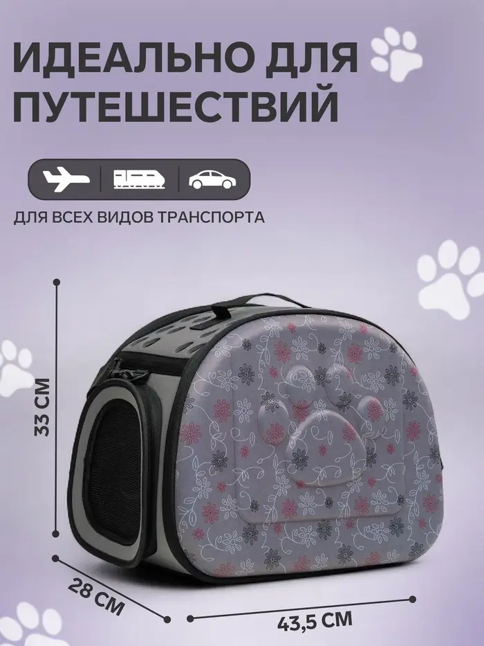 Складная сумка переноска для кошек и собак отлично подойдет для транспортировки вашего питомца в любом виде транспорта.