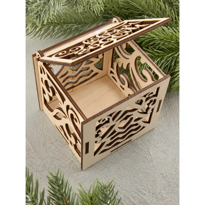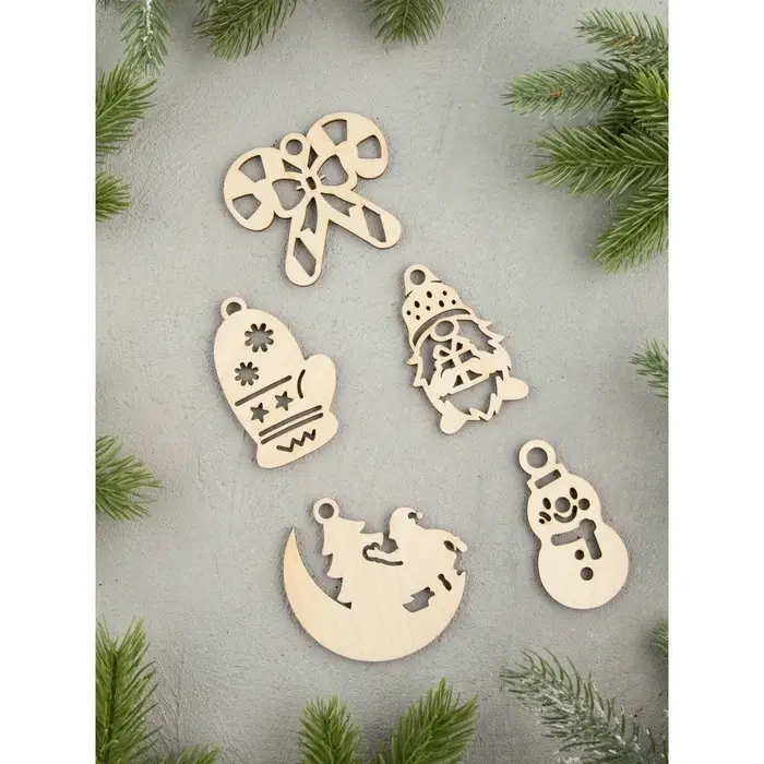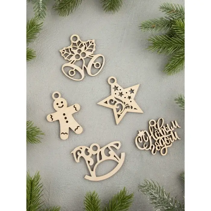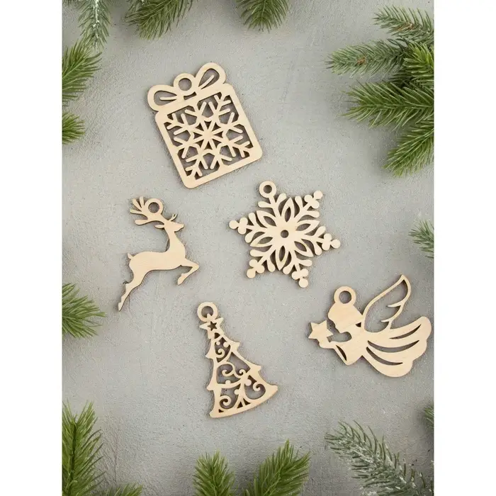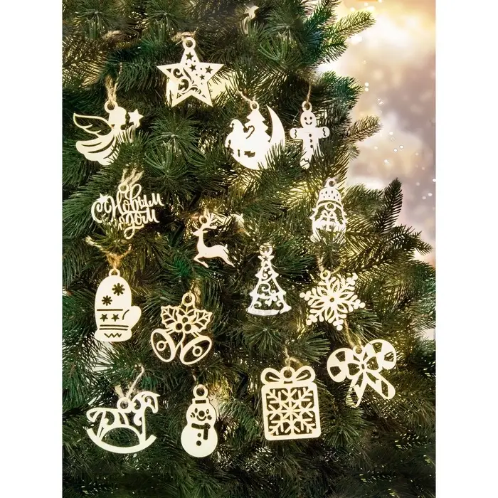 Ёлочные игрушки деревянные в коробке, набор 15 шт.