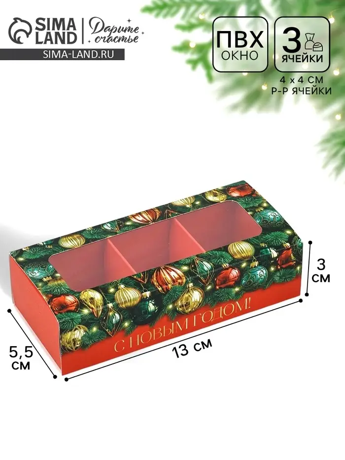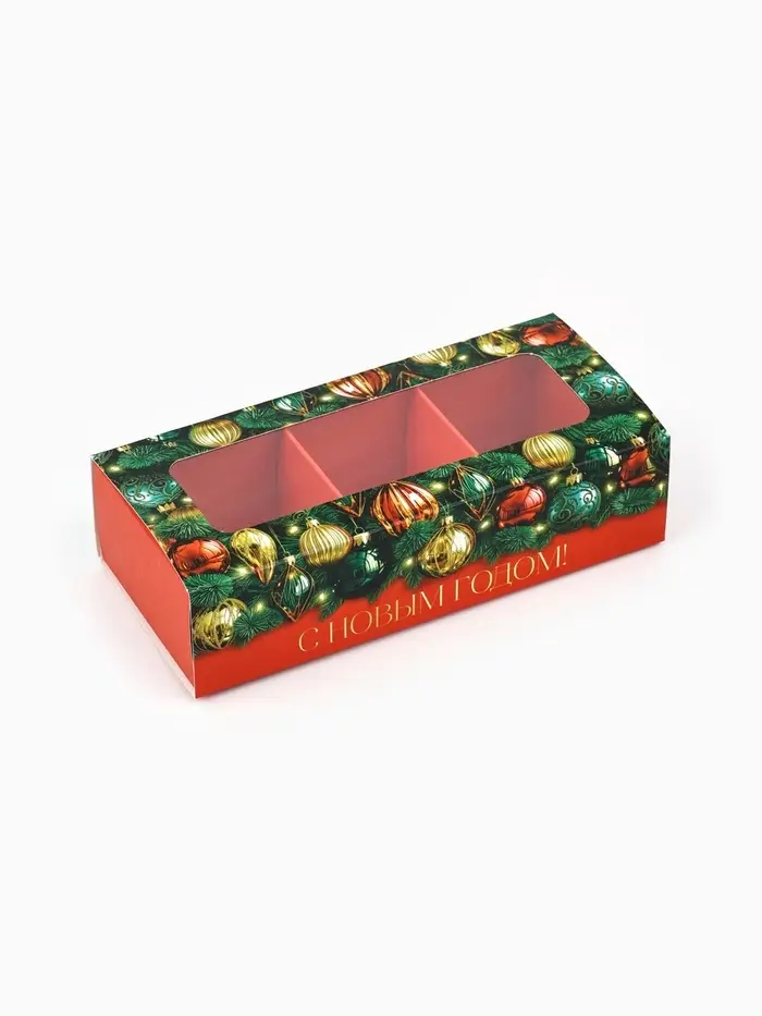 Коробка под 3 конфеты с ячейками «Новый год: Ёлочные шары», 13×3×5.5 см