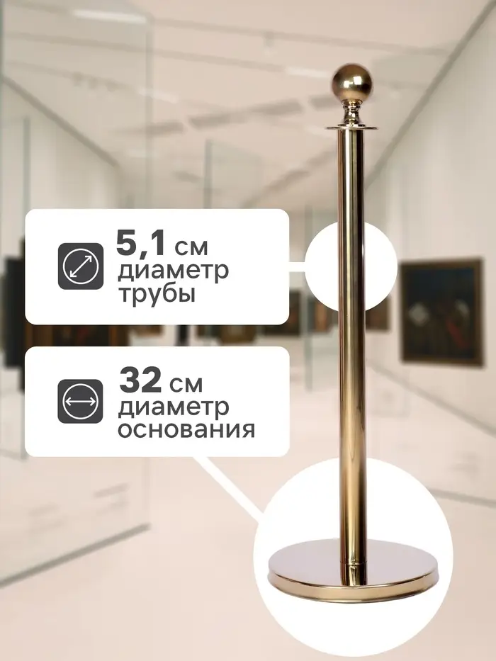 Стойка ограждения золотая, высота 95 см, d=5.1 см, напольный d=32 см