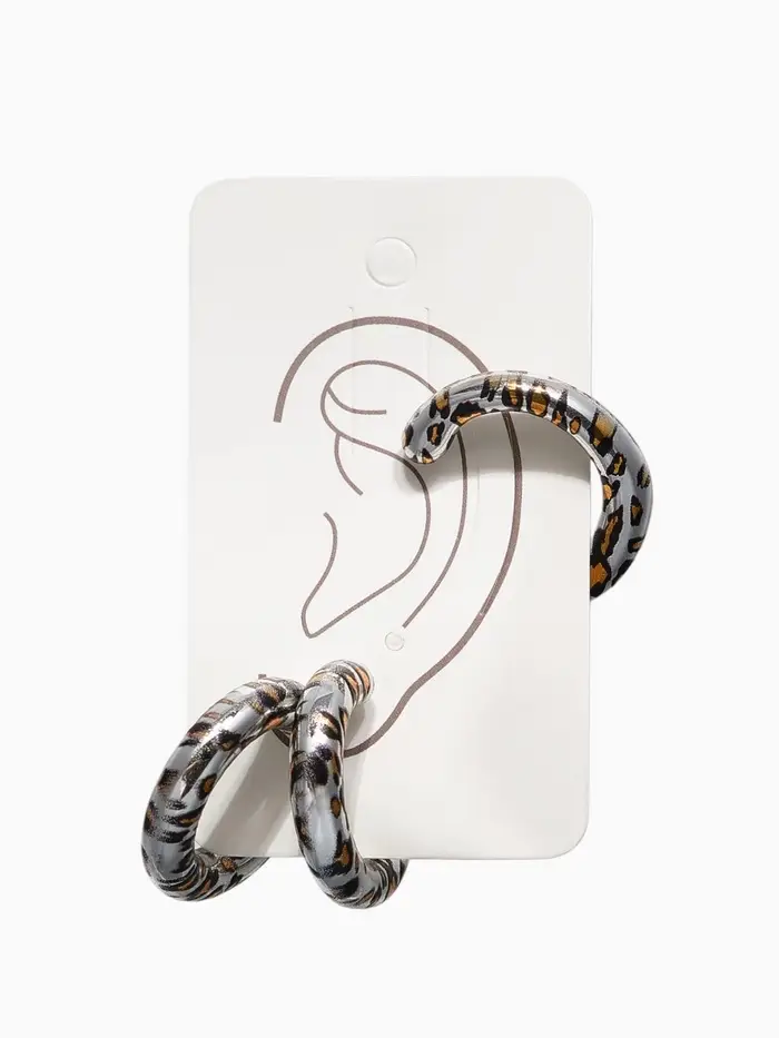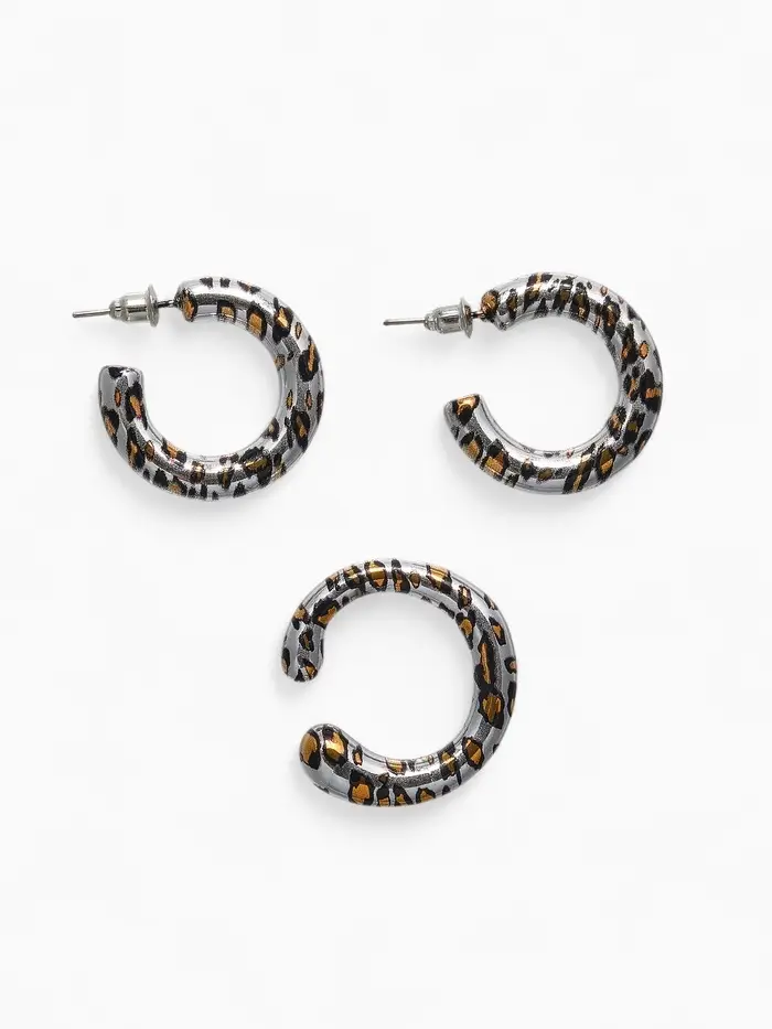 Серьги и каффы QF «Леопард», набор, цвет серебро