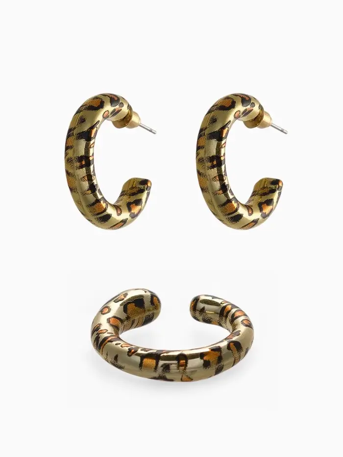 Серьги и каффы QF «Леопард», набор, цвет золото