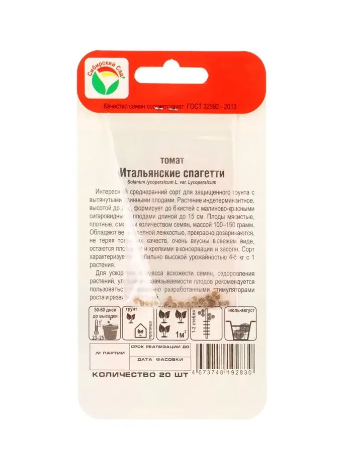 Семена Томат «Итальянские спагетти», среднеранний, индетерминантный, 20 шт., «Сибирский сад»