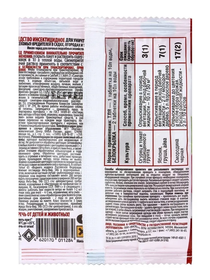 Инсектицид "Инта-Вир" от комплекса вредителей, таблетка, 8 г