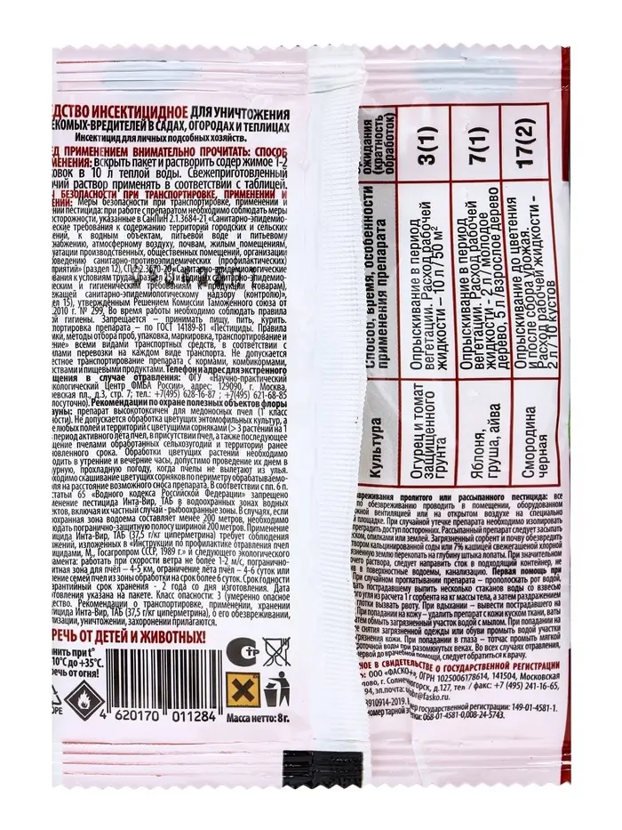 Не применяйте во время цветения. Храните в оригинальной упаковке при температуре от +5°С до +25°С.