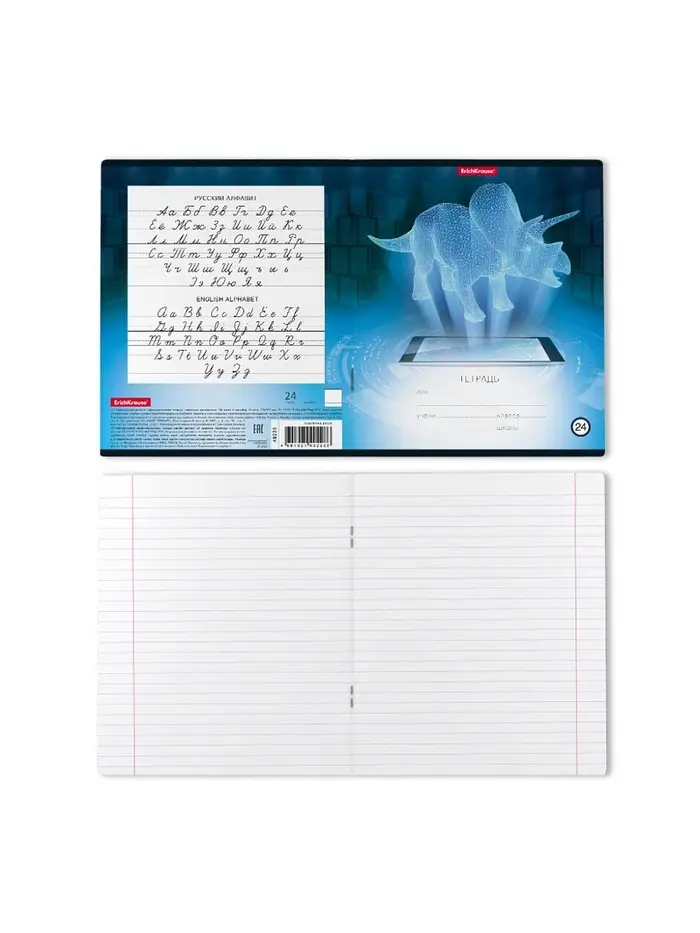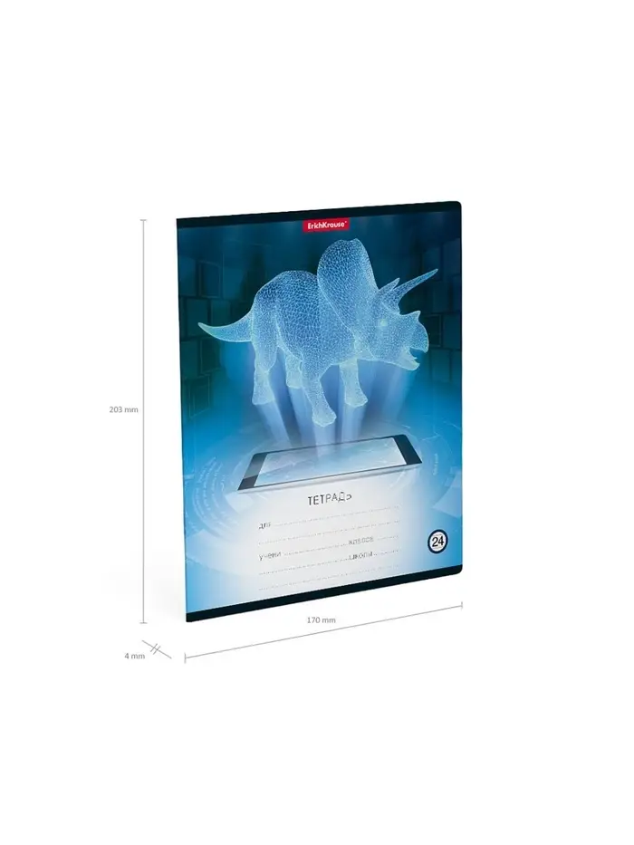 Тетрадь 24 листа в линейку ErichKrause Digital Dino, обложка мелованный картон, с принтом