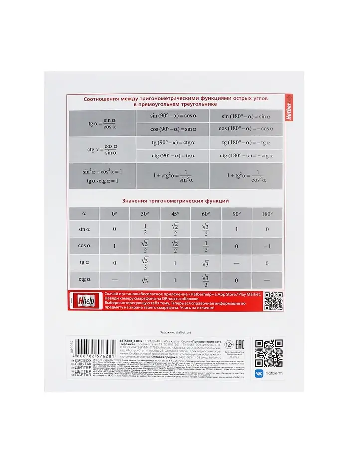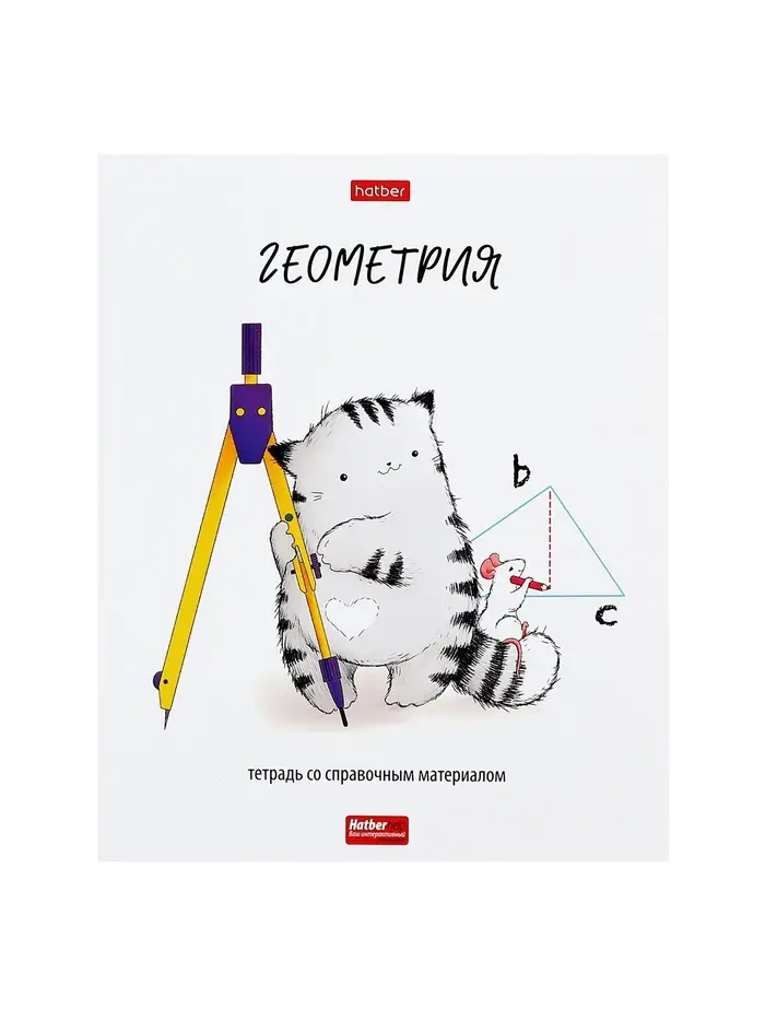 Тетрадь 48 листов в клетку «Приключения кота Пирожка» ГЕОМЕТРИЯ, обложка мелованная бумага, с интерактивным справочником, блок офсет