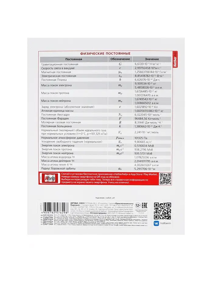 Тетрадь 48 листов в клетку «Приключения кота Пирожка» ФИЗИКА, обложка мелованная бумага, с интерактивным справочником, блок офсет