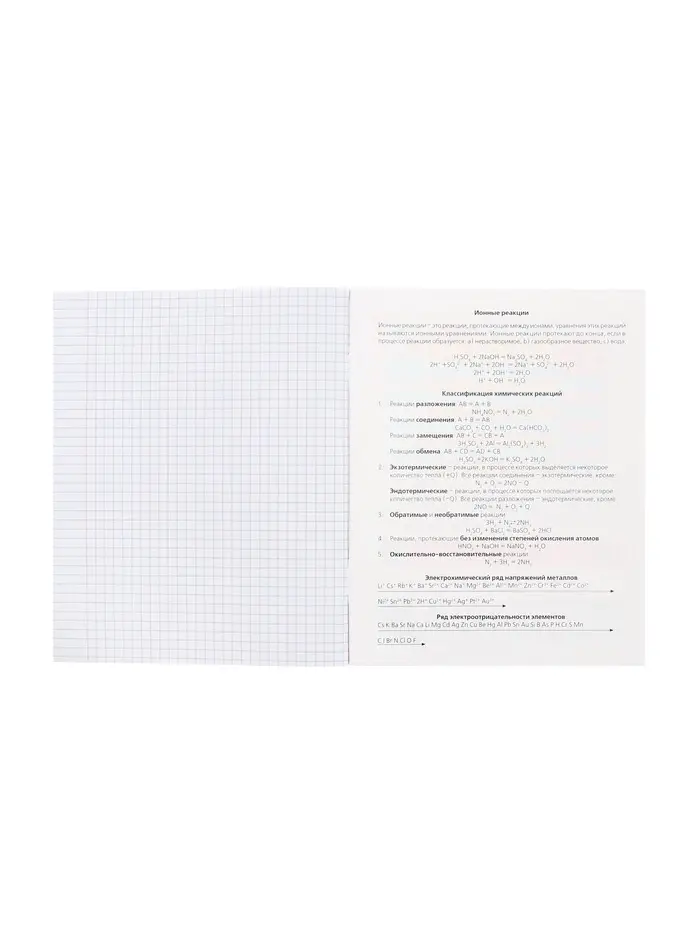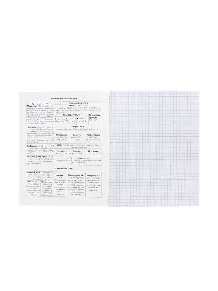Справочник в начале тетради избавляет от необходимости постоянно заглядывать в учебник. Четкая клетка и высокое качество бумаги помогают сосредоточиться на материале, а яркий дизайн поднимает настроение перед сложными уроками. Это надежный помощник для освоения школьного курса химии.