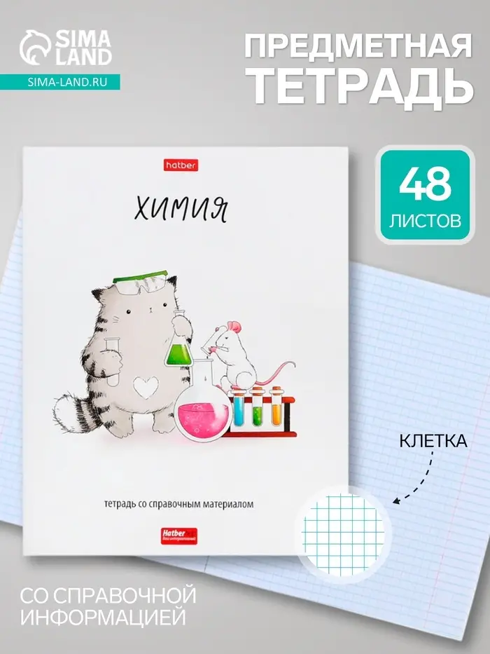 Предметная тетрадь по химии Hatber «Приключения кота Пирожка», 48 листов, в клетку, со справочным материалом, обложка из мелованной бумаги