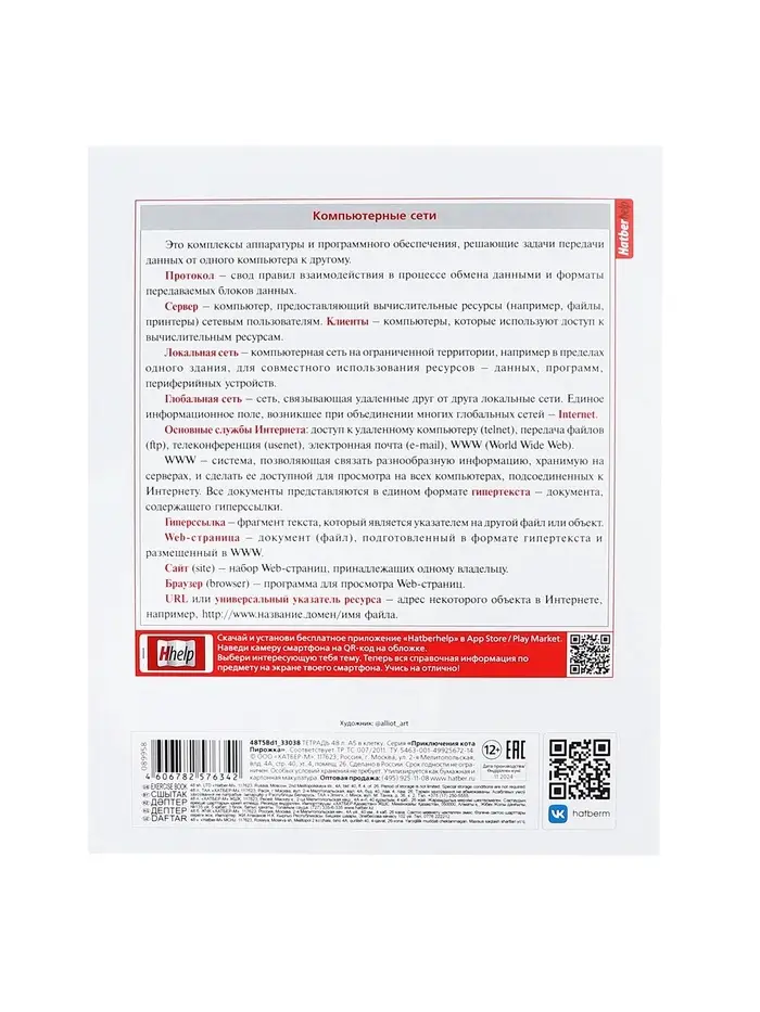 Предметная тетрадь по информатике Hatber «Приключения кота Пирожка», 48 листов, в клетку, со справочным материалом, обложка из мелованной бумаг...