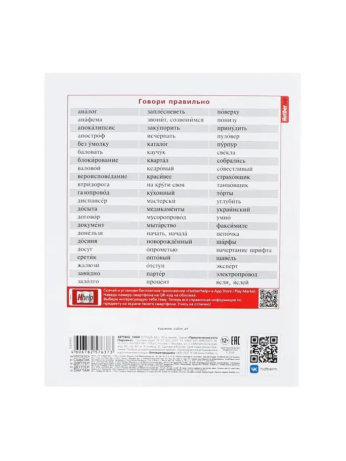 Тетрадь 48 листов в линию «Приключения кота Пирожка» РУССКИЙ ЯЗЫК, обложка мелованная бумага, с интерактивным справочником, блок офсет