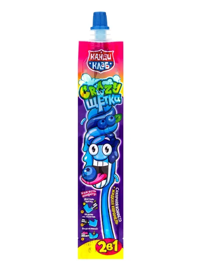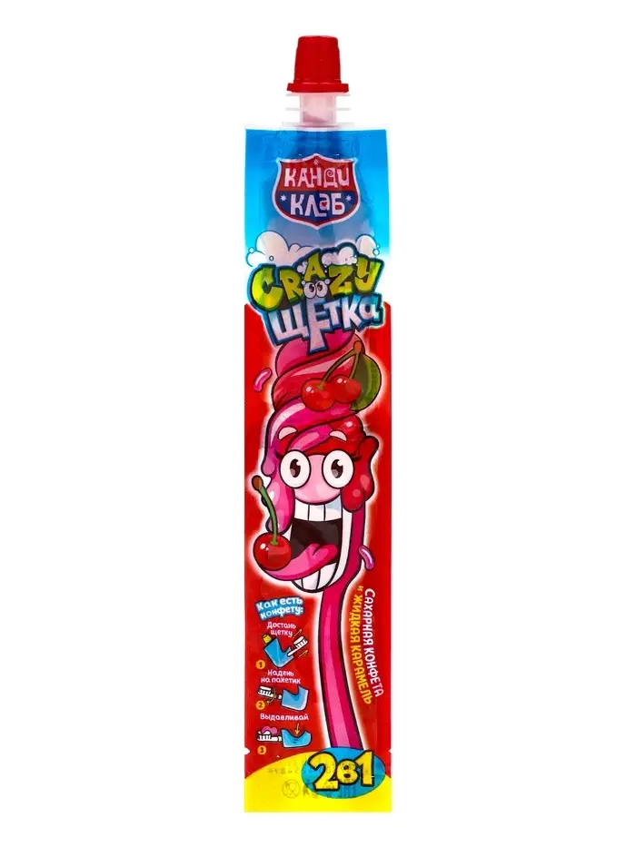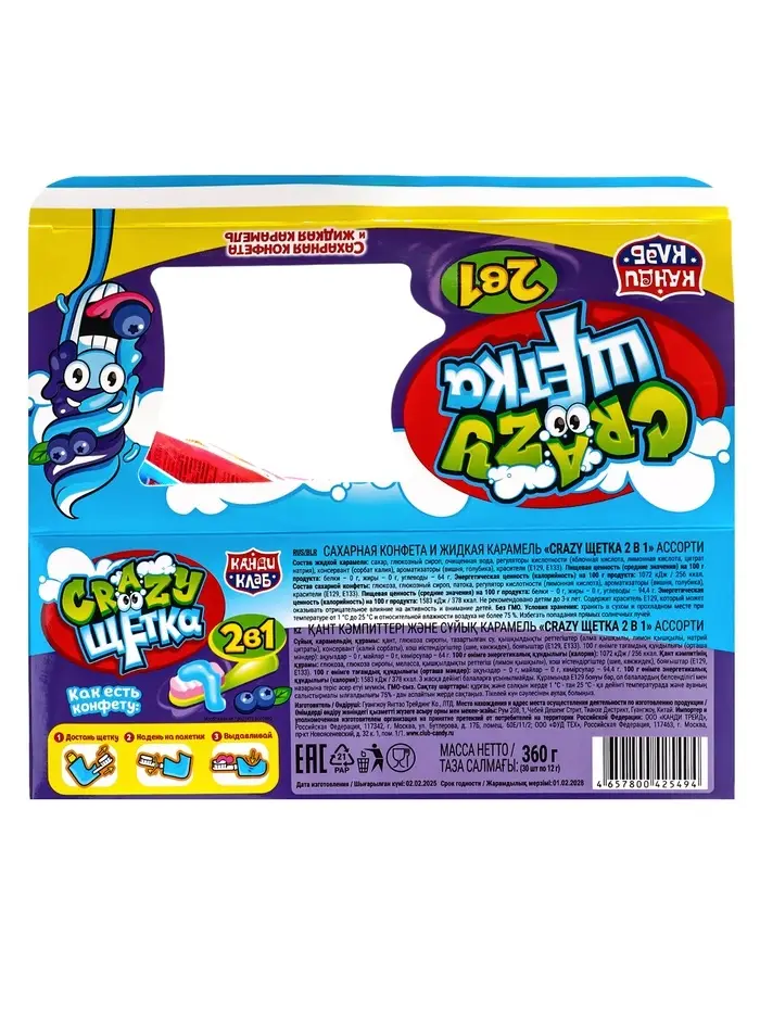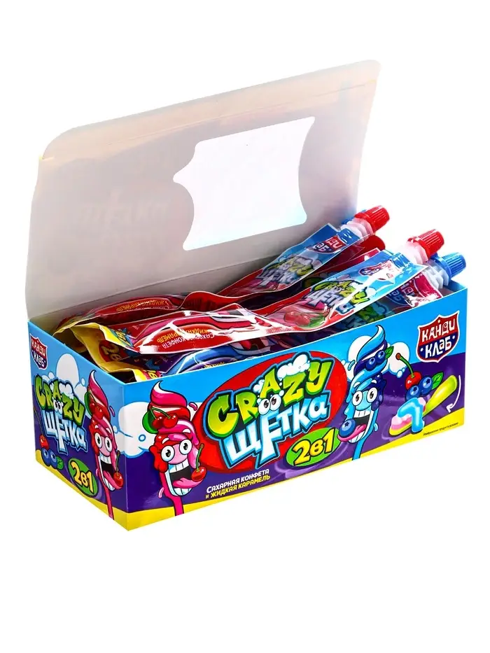 Сахарная конфета и жидкая карамель «Crazy щетка 2 в 1» 12 г×30 шт.*12 блоков
