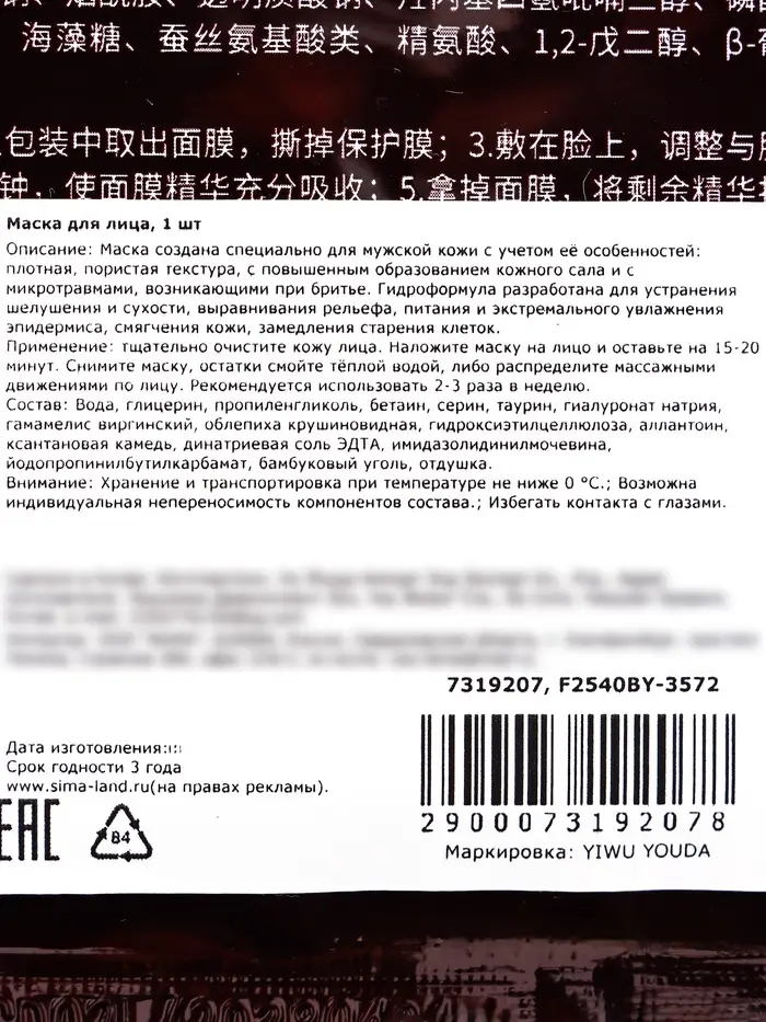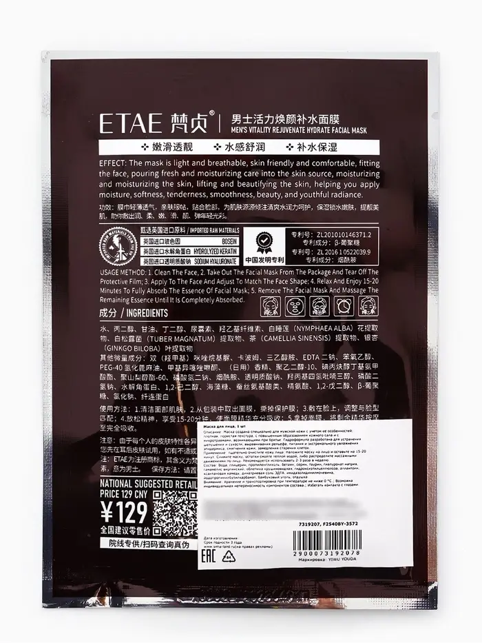 Увлажняющая тканевая маска для мужчин