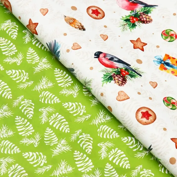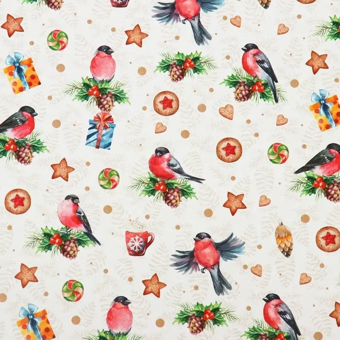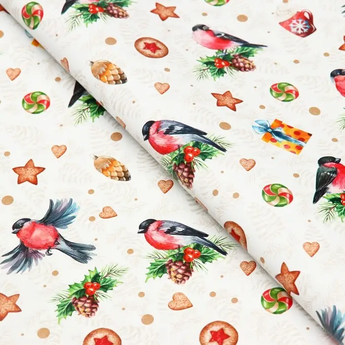 Бумага упаковочная глянцевая двусторонняя "Снегири ", 68 х 100 см