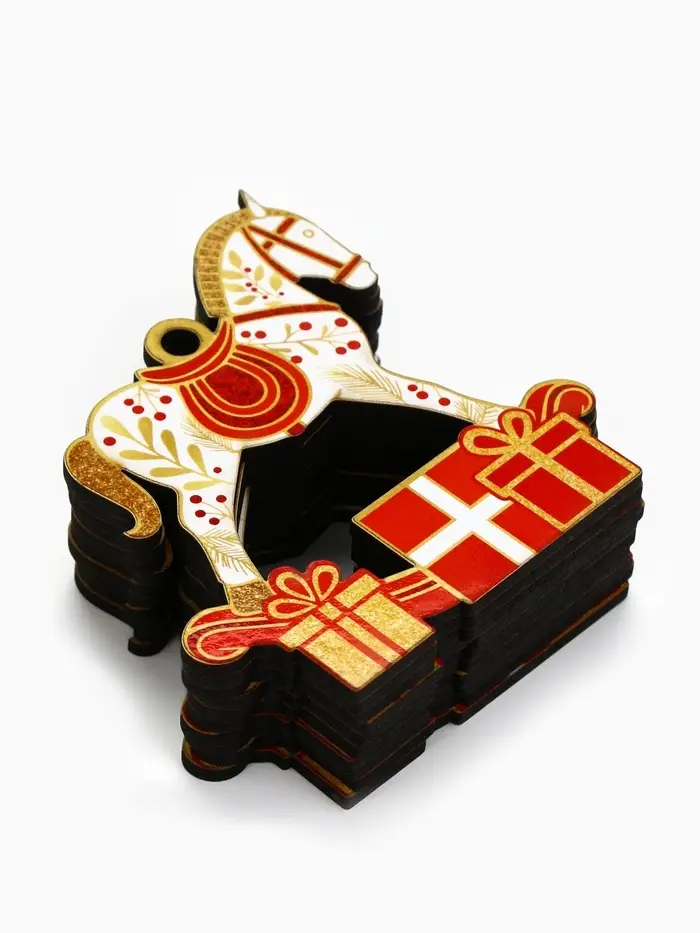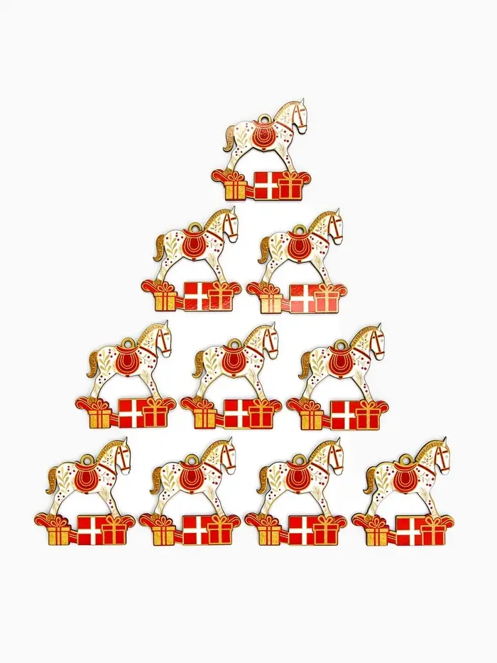 Ёлочная игрушка деревянная «Новогодний конь», набор 10 шт.