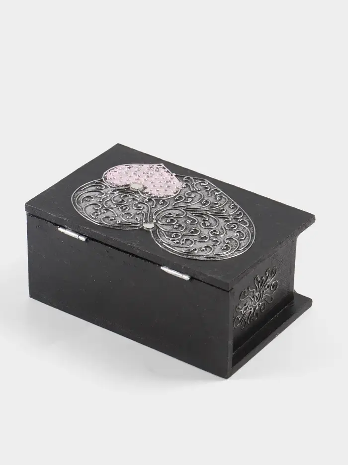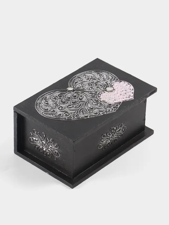 - Выразительный дизайн с тематикой сердца: Лаконичный чёрный цвет корпуса создаёт элегантный контраст с нежным рисунком. Такой мотив делает шкатулку идеальным символом чувств — для подарка на 14 февраля, годовщину или просто как знак внимания.