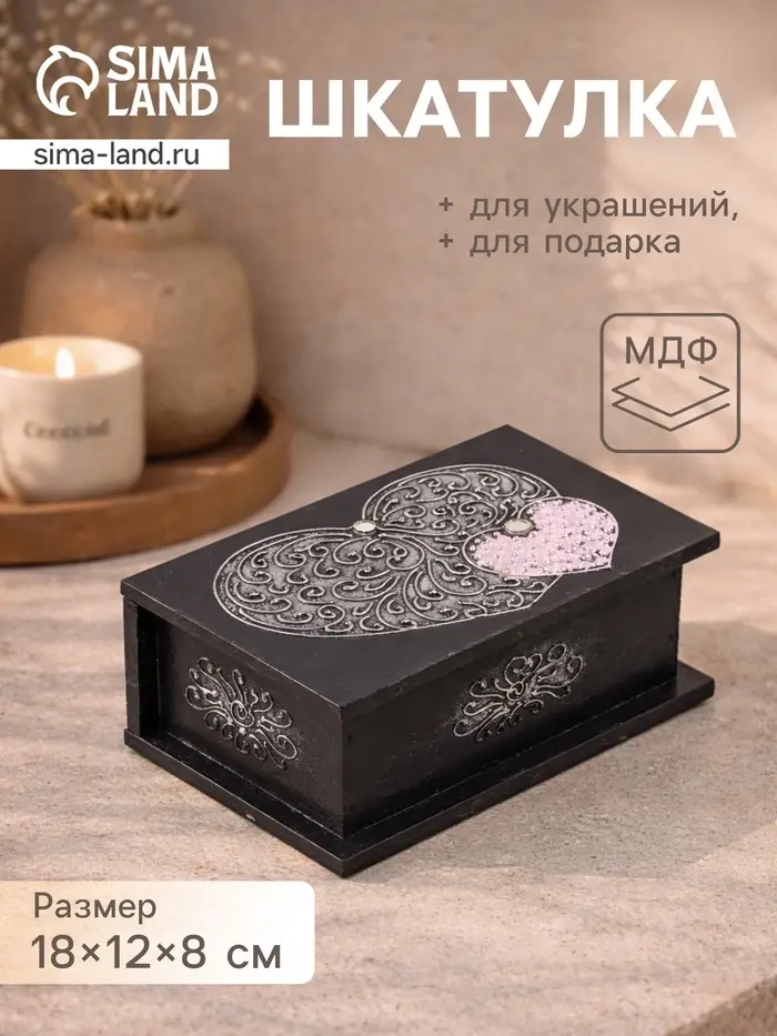 Шкатулка «Сердца», 18×12×8 см, МДФ