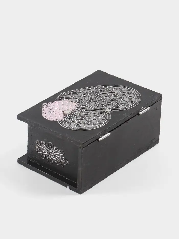 - Качественная обработка материалов: Основа из МДФ обеспечивает устойчивость и долговечность. Поверхность покрыта гладкой краской, приятной на ощупь. Шкатулка надёжно закрывается, сохраняя содержимое в безопасности.