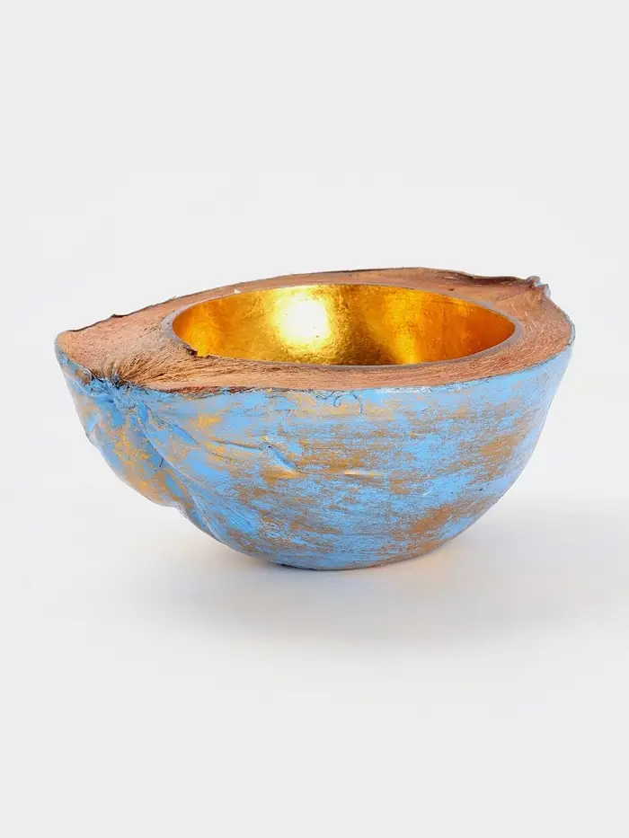 Чаша из кокоса, 22.5×25×10 см, сине-золотая