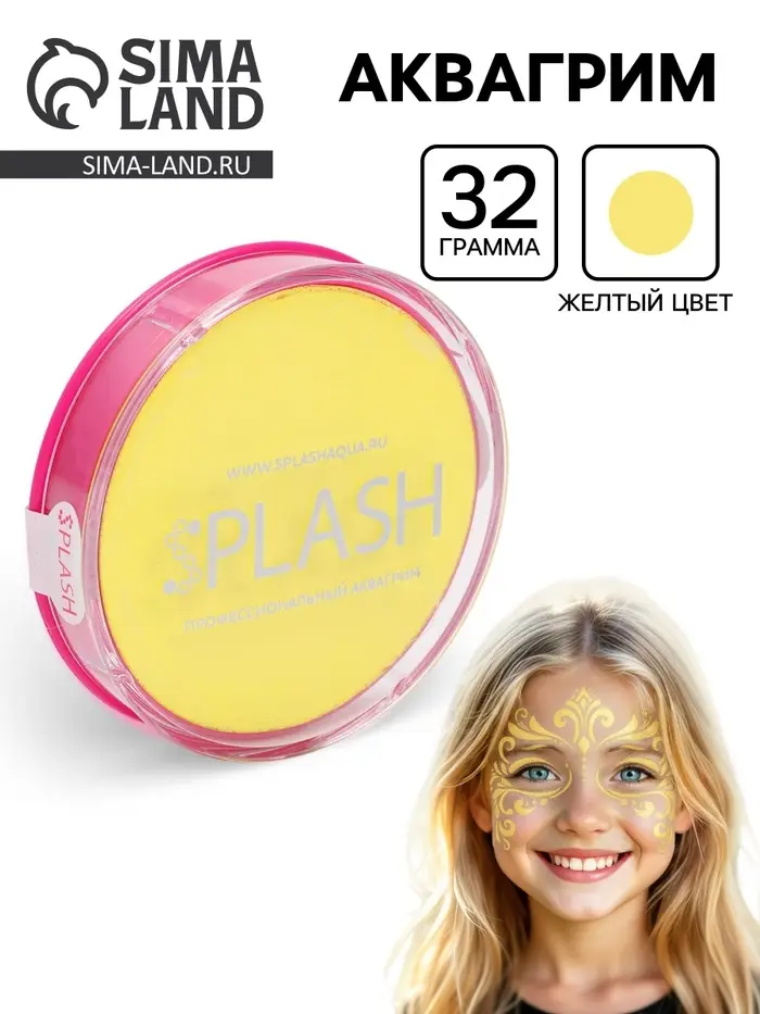 Аквагрим в шайбе, регулярный, желтый, 32 г