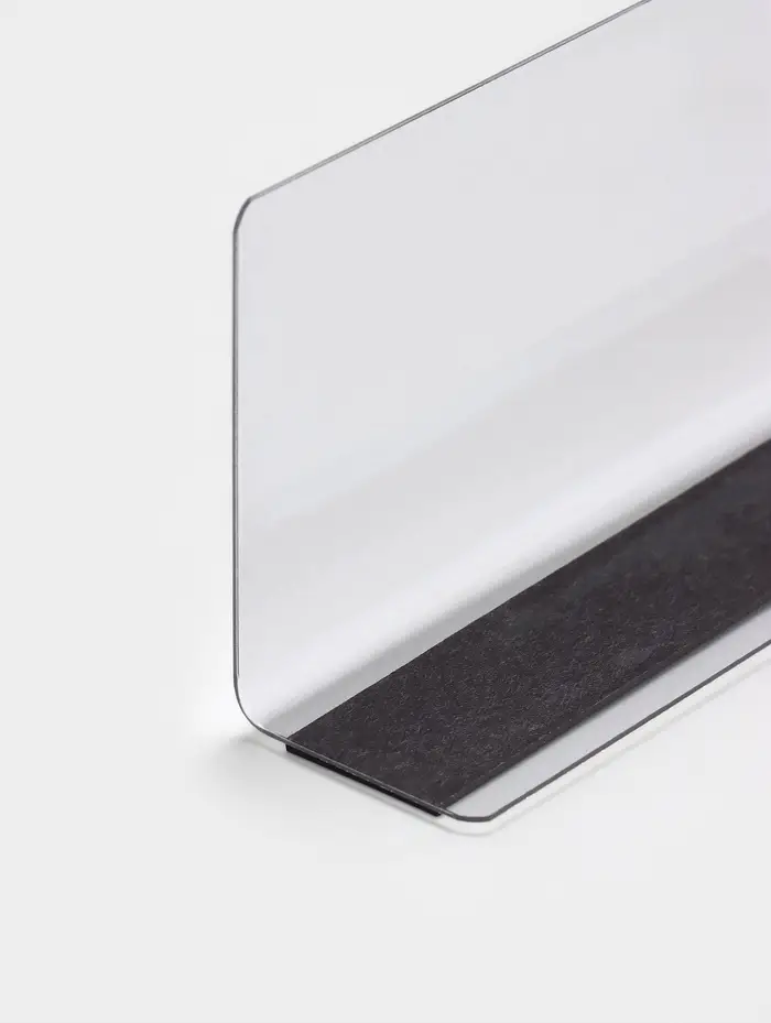 Благодаря прочному пластиковому материалу разделитель отличается устойчивостью к износу и механическим воздействиям, а клейкое основание гарантирует надёжное крепление без необходимости использования дополнительных инструментов. Это существенно упрощает монтаж и позволяет быстро адаптировать разделитель под изменяющиеся задачи.