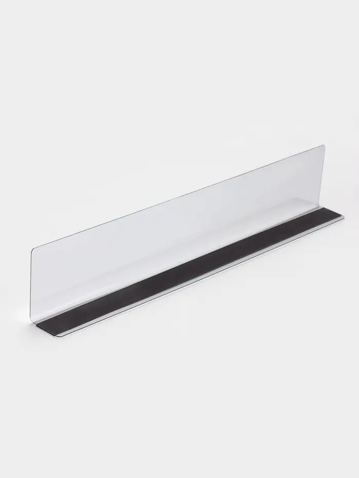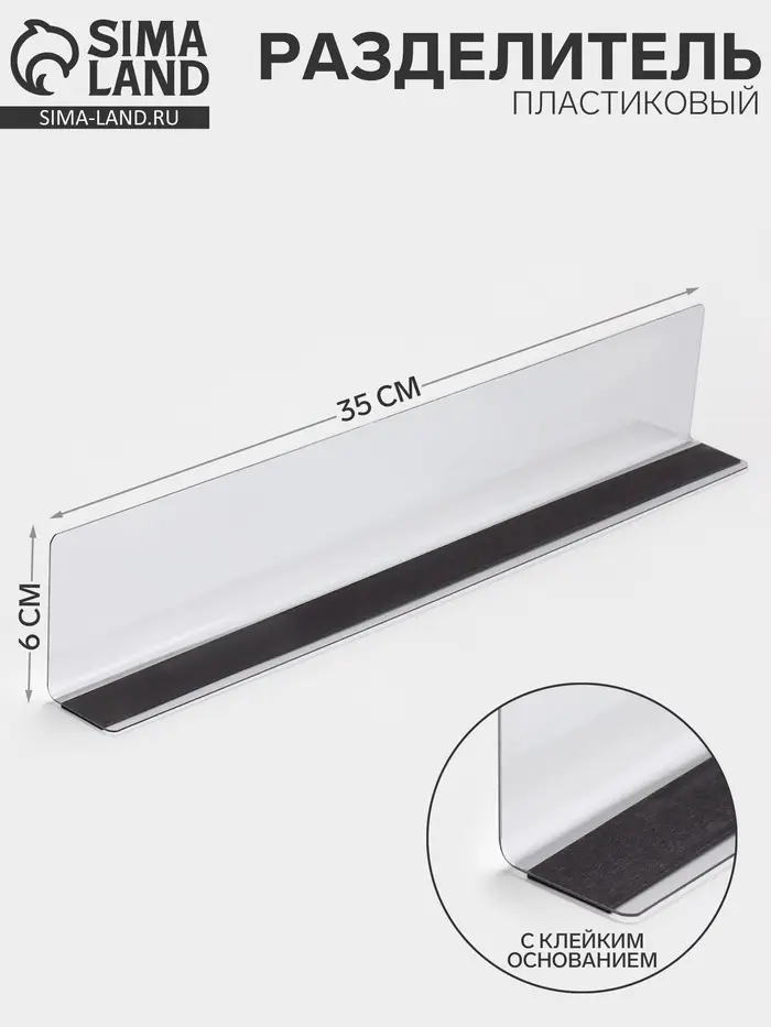 Пластиковый разделитель высотой 60 мм с клейким основанием — практичное решение для организации пространства и создания чётких границ в различных областях применения. Его длина 350 мм и компактная глубина 3 мм позволяют легко интегрировать изделие в мебельные конструкции, витрины, ящики и полки, обеспечивая аккуратность и порядок.
