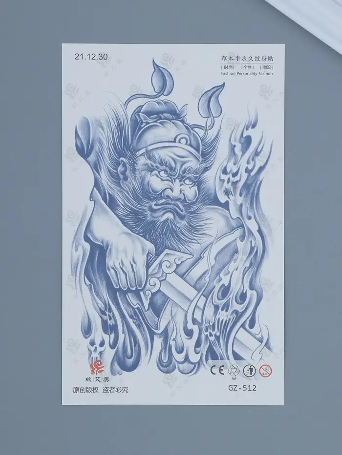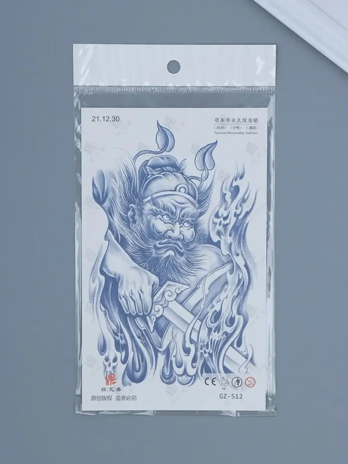 Татуировка на тело "Китайский воин с мечом - нападение" 18х11 см