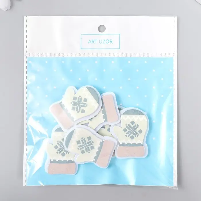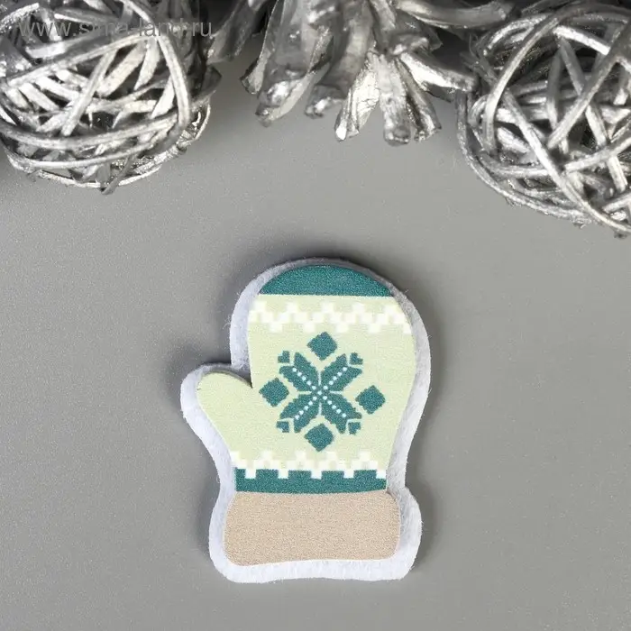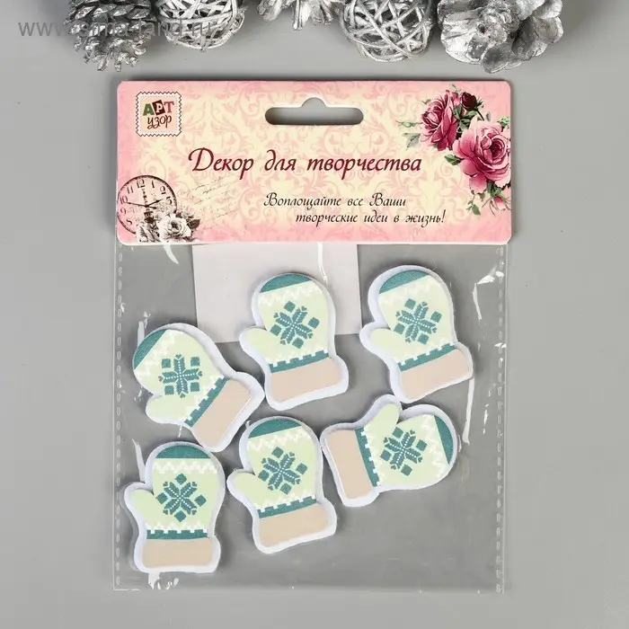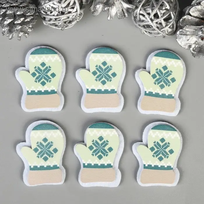 Декор для творчества дерево, войлок "Варежки" набор 6 шт 4х3,2 см