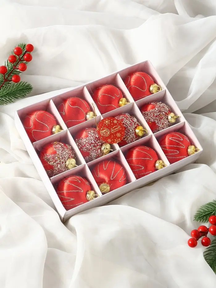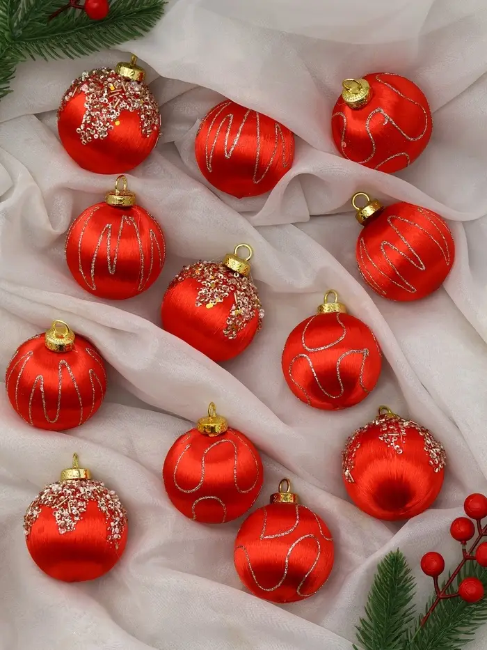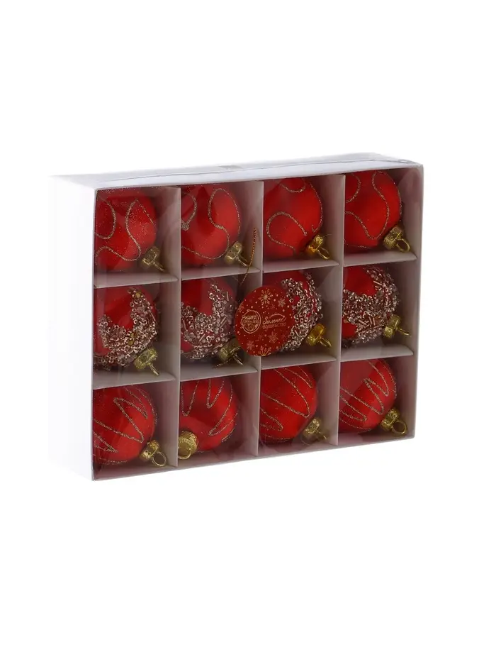 Набор шаров пластик d-6 см, 12 шт "Капризы зимы" красный