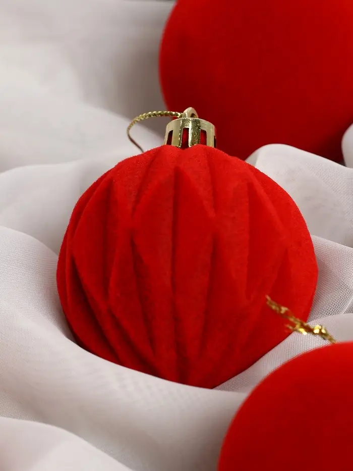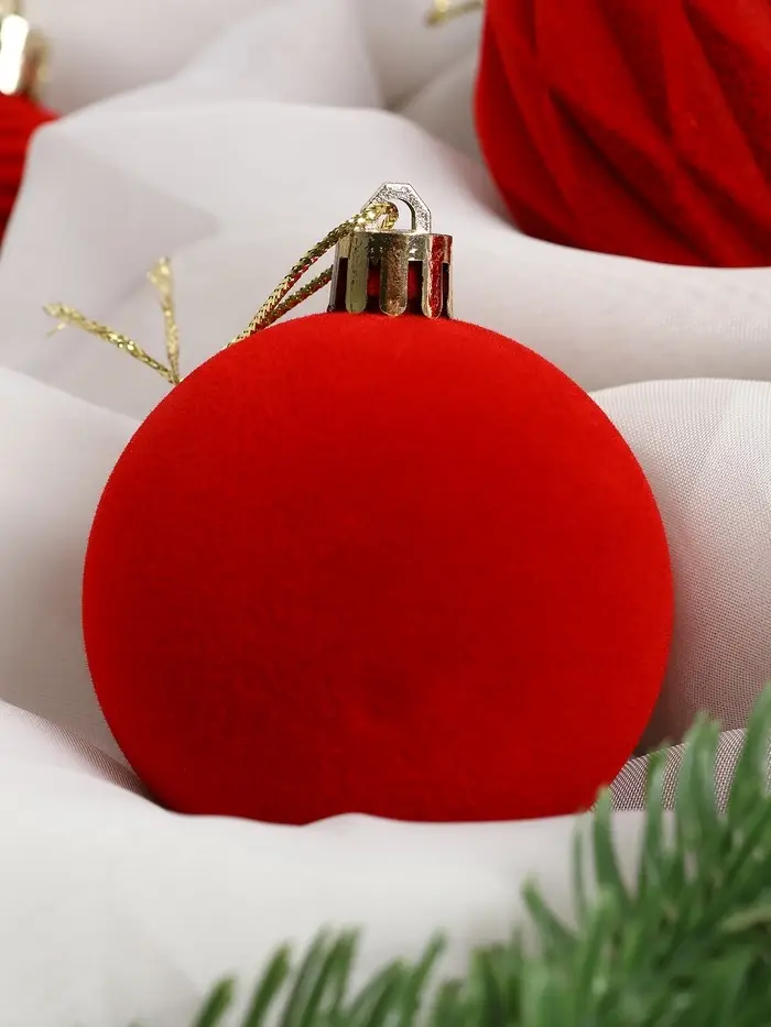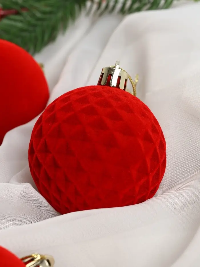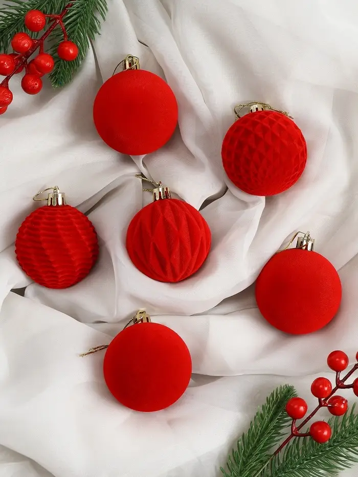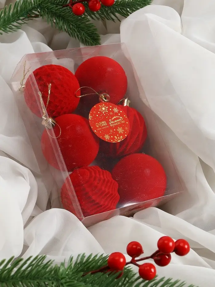 Набор шаров пластик d-6 см, 6 шт "Бархат. Время праздника" классик, красный