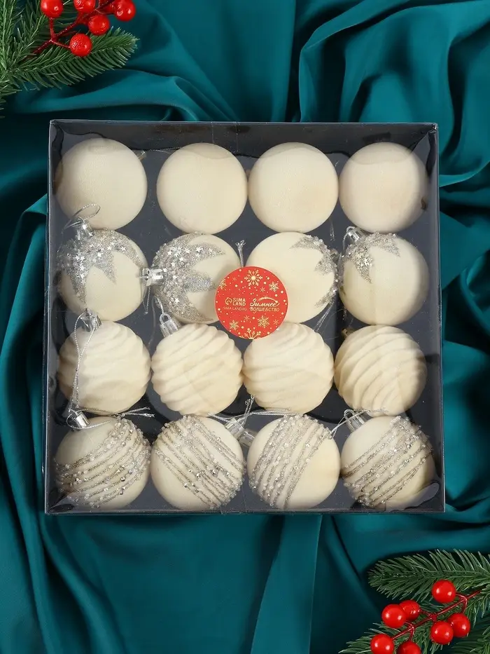 Ёлочные шары «Бархат. Маскарад», шары новогодние, d=6 см, 16 шт., белый